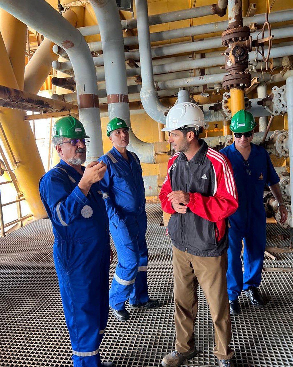 به گزارش آوای جنوب ، مهندس علی پورحقیقی مدیر امور فنی شرکت نفت فلات قاره ایران با همراهی روسای واحدهای مهندسی مخازن، مهندسی فرآورش، مهندسی بهره‌برداری و مدیر پروژه تحت‌الارض فروزان به منظور بررسی راهکارهای فنی افزایش تولید و دستیابی به اهداف تعیین‌شده صنعت نفت، از ۱۱ تا ۱۵ آذر از پروژه‌ها و تاسیسات بخش خشکی، مجتمع‌های دریایی منطقه عملیاتی خارگ و کلیه‌ دکل‌های حفاری بازدید کردند.