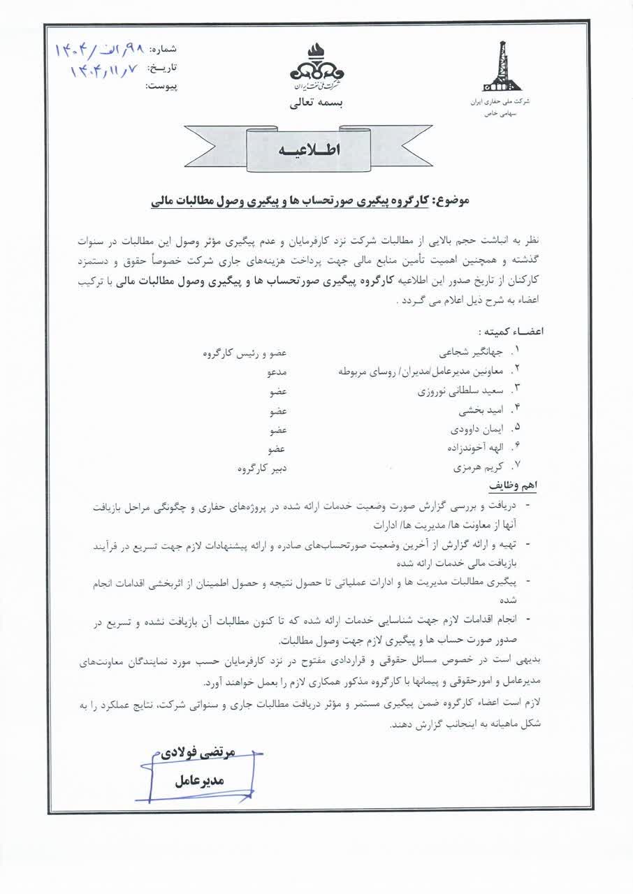 برای تسریع در وصول مطالبات معوق شرکت و تأمین منابع مالی پرداخت حقوق کارکنان، کارگروه ویژه‌ای با حضور مدیران ارشد و مسئولان مالی تشکیل شد.