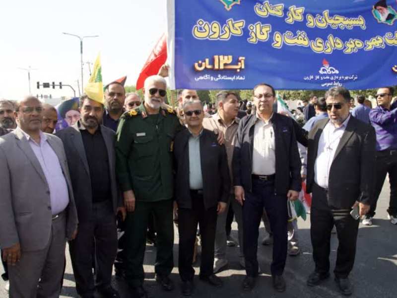حضور کارکنان شرکت نفت و گاز کارون در راهپیمایی سیزده آبان