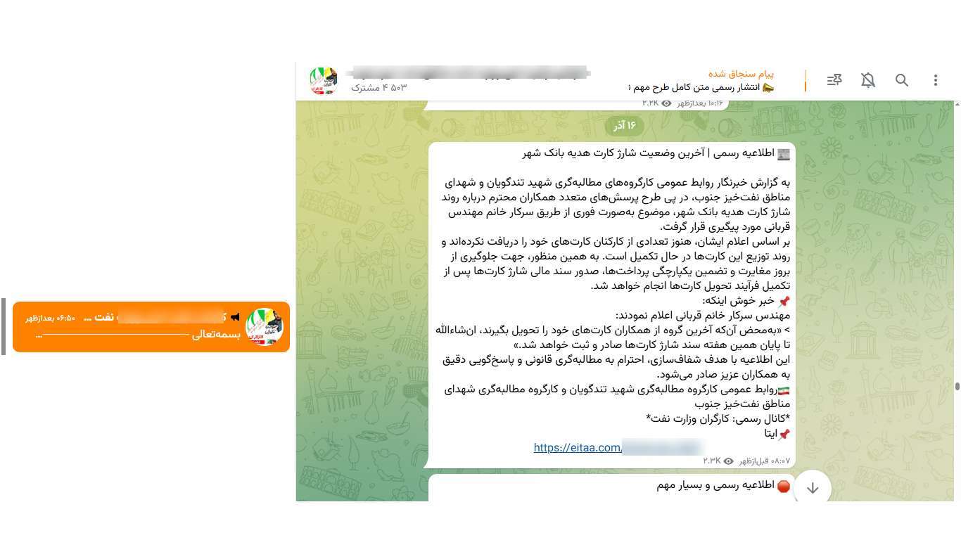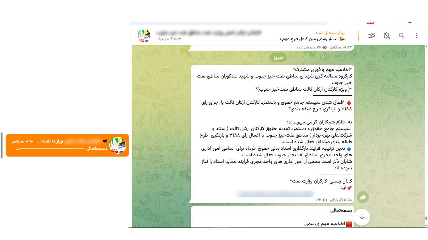 لازم به توضیح است سواد رسانه ای خود را بالا ببرید، هرکسی میتواند در این کانال ها اخبار را ببیند ولی افرادی بخاطر اینکه ما صدای کارکنان ارکان ثالث صنعت نفت و شرکت ملی نفت و مناطق نفتخیز جنوب و بازنشستگان صنعت نفت هستیم به مزاج آنها خوش نیامده است.
